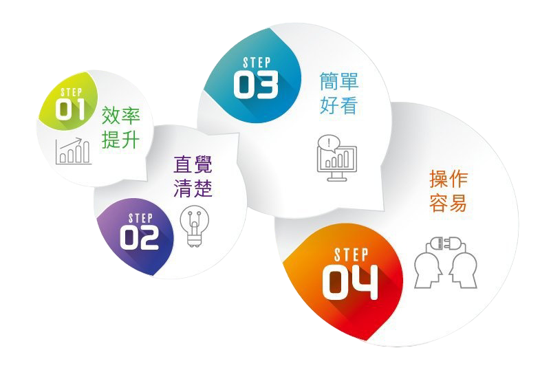 效率提升、 直覺清楚、 簡單好看、 操作容易