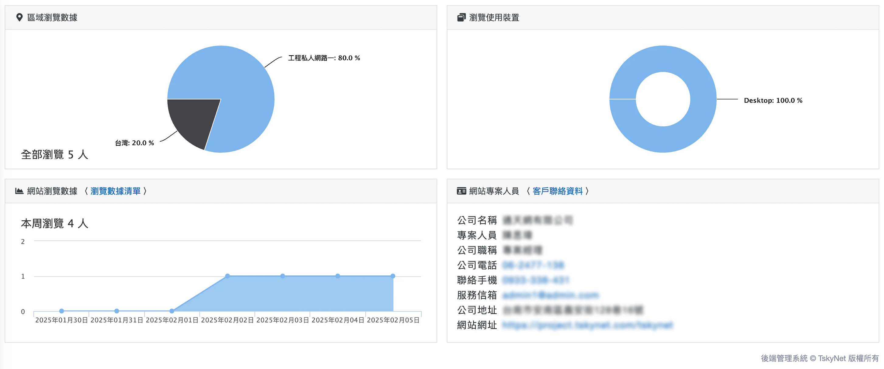 後台內建 網站流量統計系統,可隨時查看每日訪客數據,讓您清楚掌握網站的流量與成長趨勢。此外,我們提供專屬 專案管理人員,確保當您遇到問題時,能夠快速找到負責人進行協助,不讓問題懸而未決。